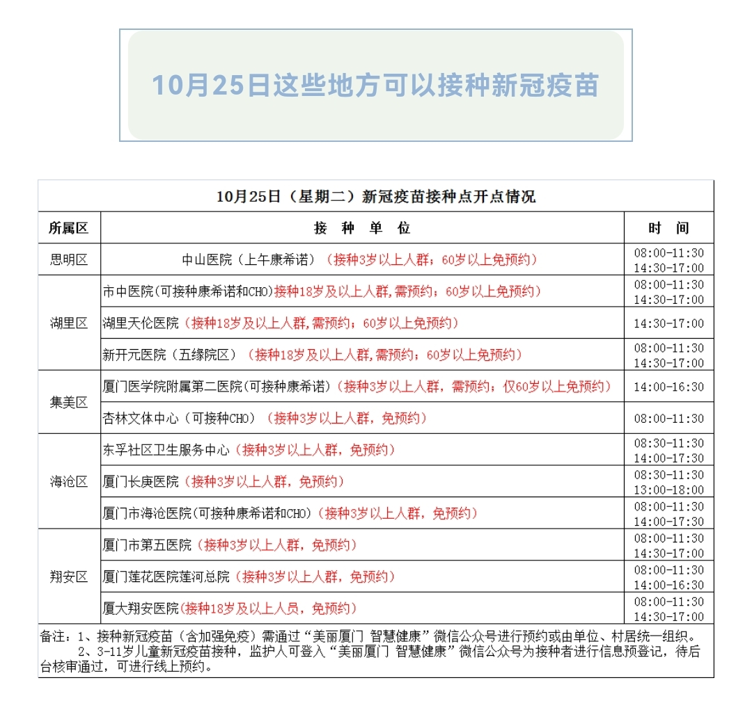 10月25日疫苗接种点信息更新