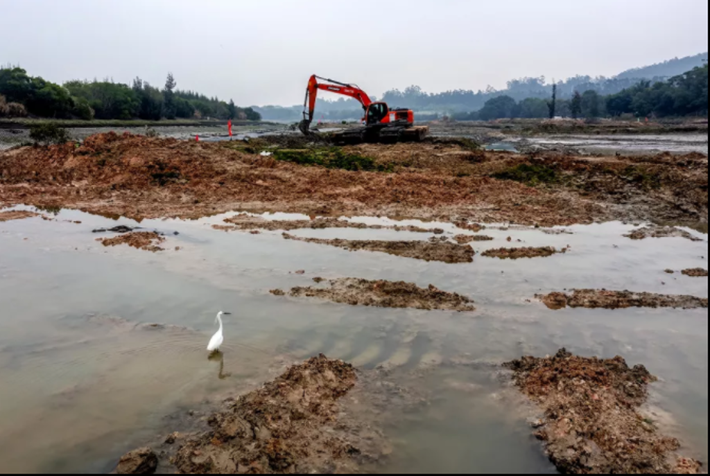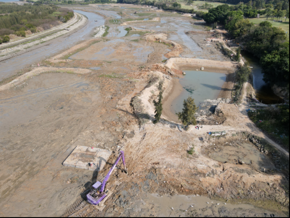 不远处挖掘机正在施工围堰