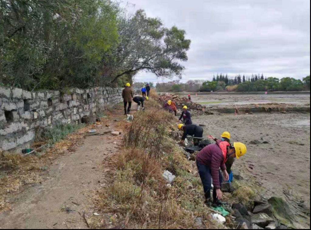 赶在退潮时施工红树林围堰