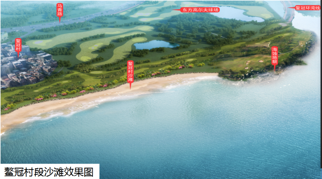 项目由城建集团土地公司代建,建设内容包括鳌冠湾清淤、滩面清理、红树林种植、沙滩修复等工程。项目总投资4亿多元,预计明年年底竣工。