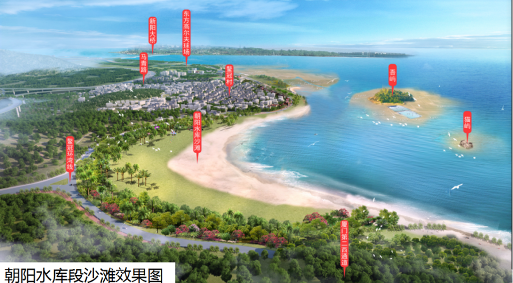 该项目位于厦门西海域,岸线北起新阳大桥,南至朝阳水库南侧(靠海沧大桥北面),南接海沧湾,北连马銮湾,岸线长约5855米。