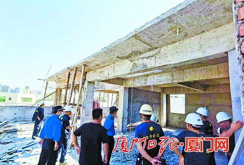 7月1日,东孚中队督促当事人自拆了洪塘村一处水塔密闭的泡沫隔板,消除了火灾安全隐患;7月13日,嵩屿中队依法拆除钟山蔡寿山一处房屋违法加盖的第五层模板,海沧区城管局相关负责人到场监督,着重对拆除安全提出具体要求……