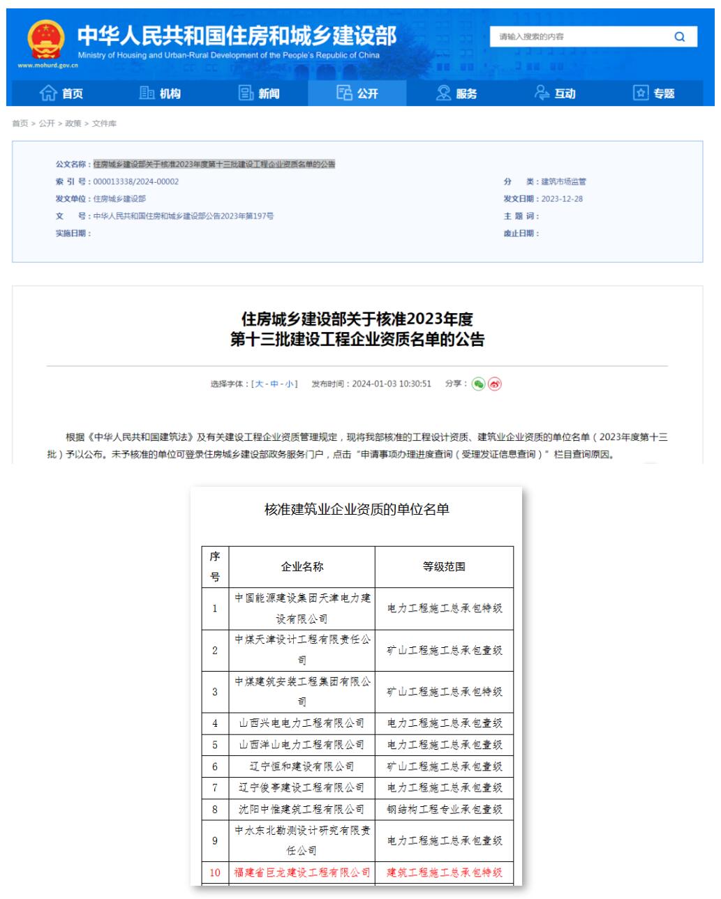 福建省巨龙建设工程有限公司成为海沧第一家施工总承包特级资质企业,填补了我区施工类特级资质的空白。