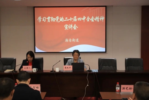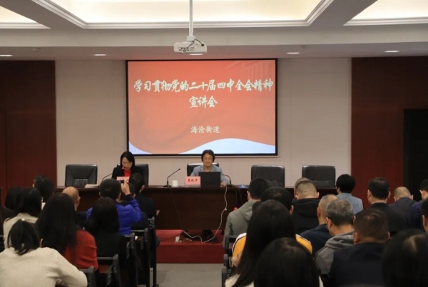 11月20日上午,海沧街道举办学习贯彻党的二十届四中全会精神专题宣讲会。街道领导班子成员、全体干部职工、各村(社区)主干、离退休干部代表、新兴领域党组织代表、基层党员及群众代表等齐聚一堂,共同参与这场思想盛宴。本次宣讲会旨在引导街道广大党员干部群众深刻领会全会精神核心要义,将思想与行动统一到党中央决策部署上来,奋力开创基层工作新局面。