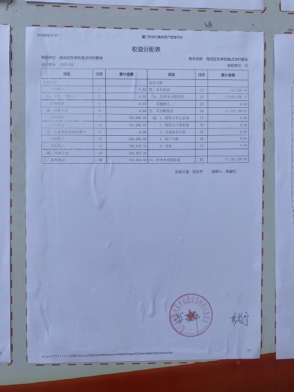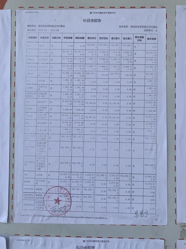 东孚街道贞岱村2023年第三季度村务公开如下: