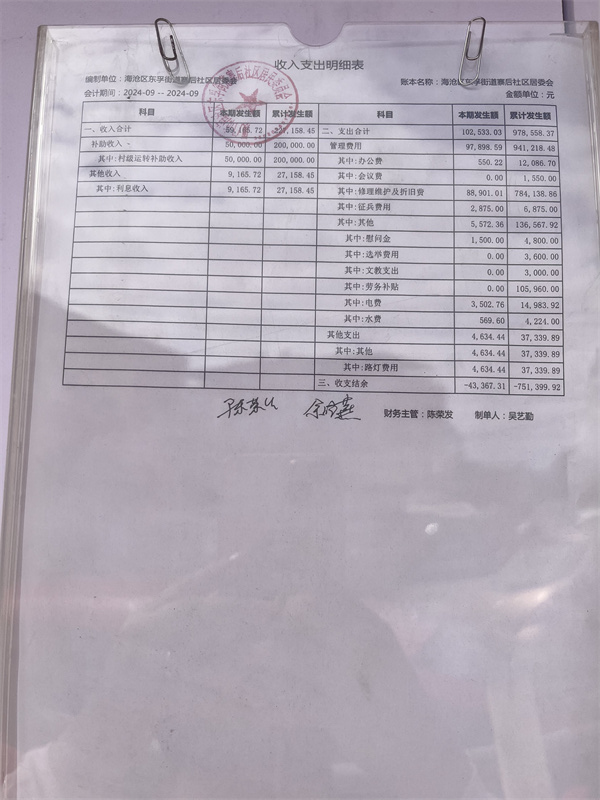 东孚街道寨后社区2024年第三季度居务公开如下: