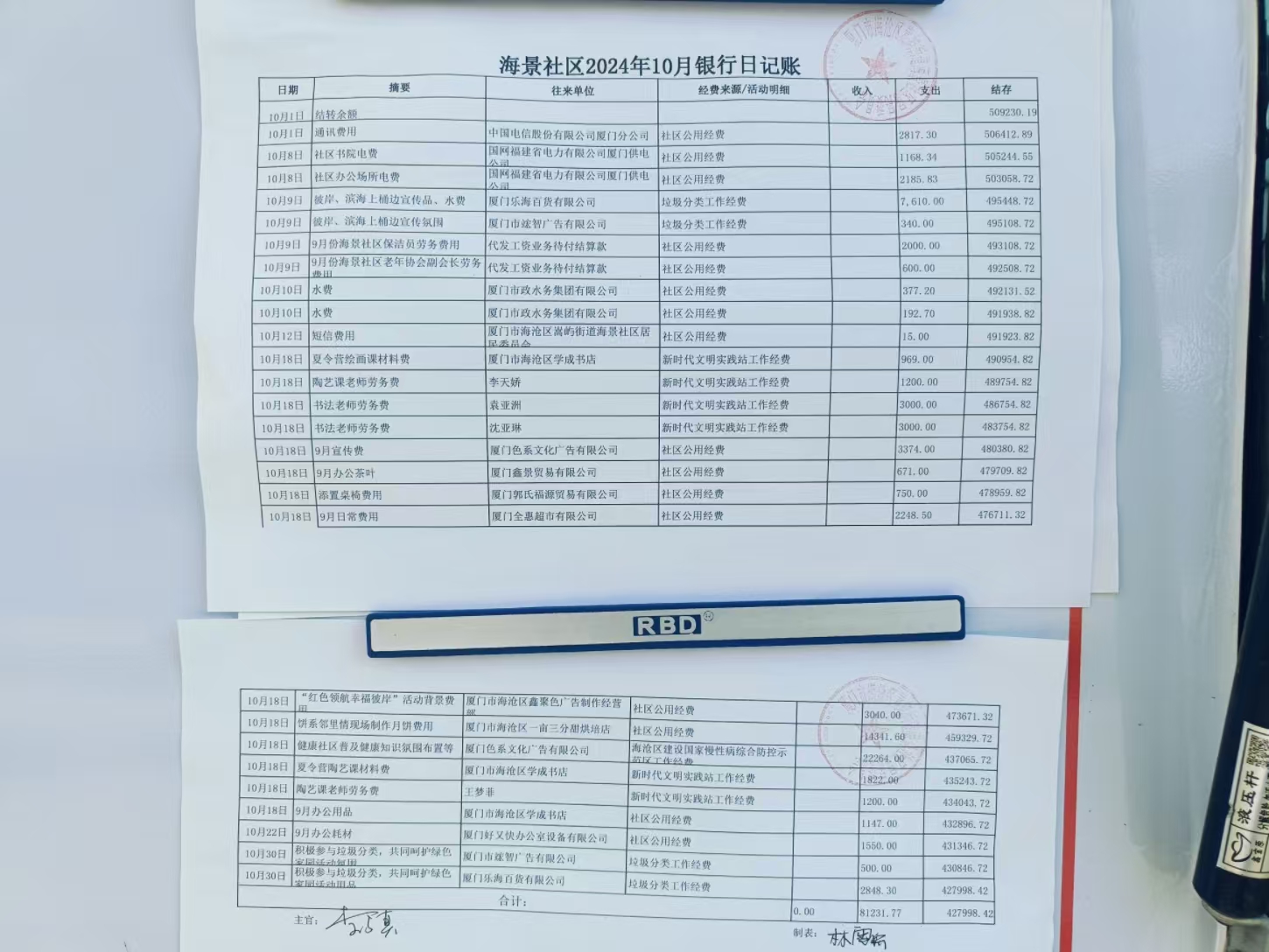 嵩屿街道海景社区2024年第四季度居务公开,公示如下: