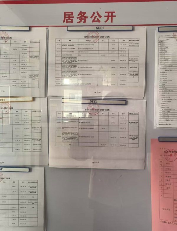 嵩屿街道海翔社区2024年第四季度居务公开,公示如下:
