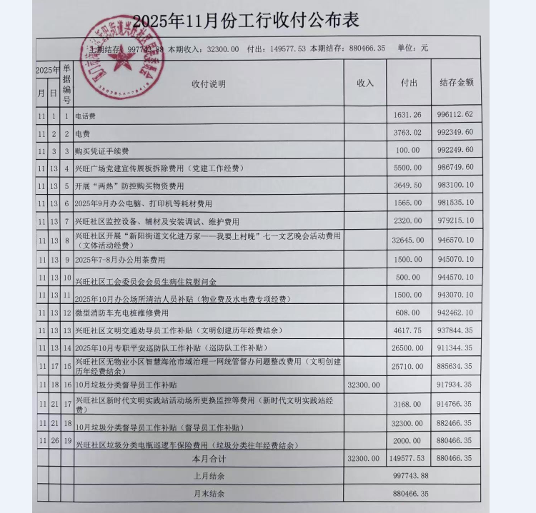 兴旺社区2025年第四季度居务公开公示如下: