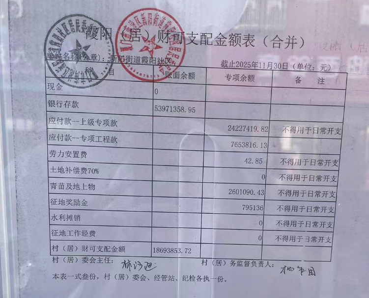 霞阳社区2025年第四季度居务公开公示如下: