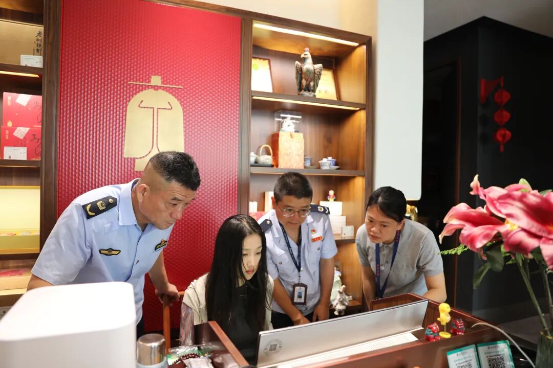 区纪委监委党风政风监督室紧盯“四风”问题,联合相关职能部门深入辖区大型商超、高档烟酒专卖店等重点场所,聚焦违规吃喝、违规收送礼品礼金等“四风”突出问题开展精准监督。图为党风政风监督室联合区税务局、区市场监督管理局到茶叶专卖店开展监督检查。