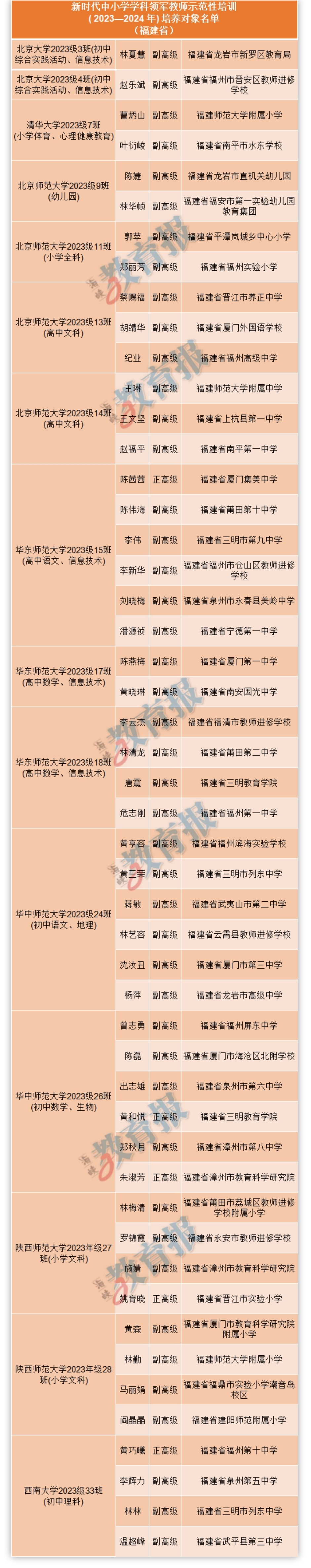 福建省共有50位教师入选