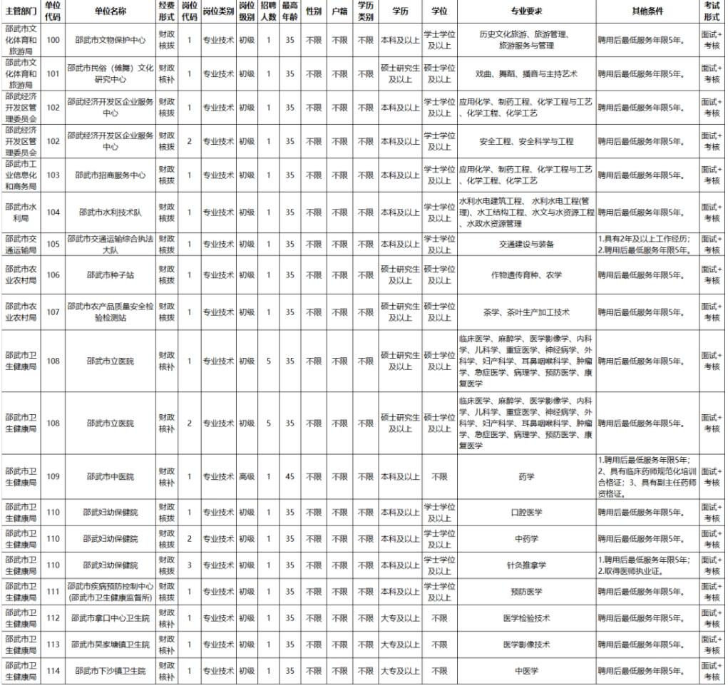 邵武市事业单位公开招聘紧缺急需专业工作人员27名