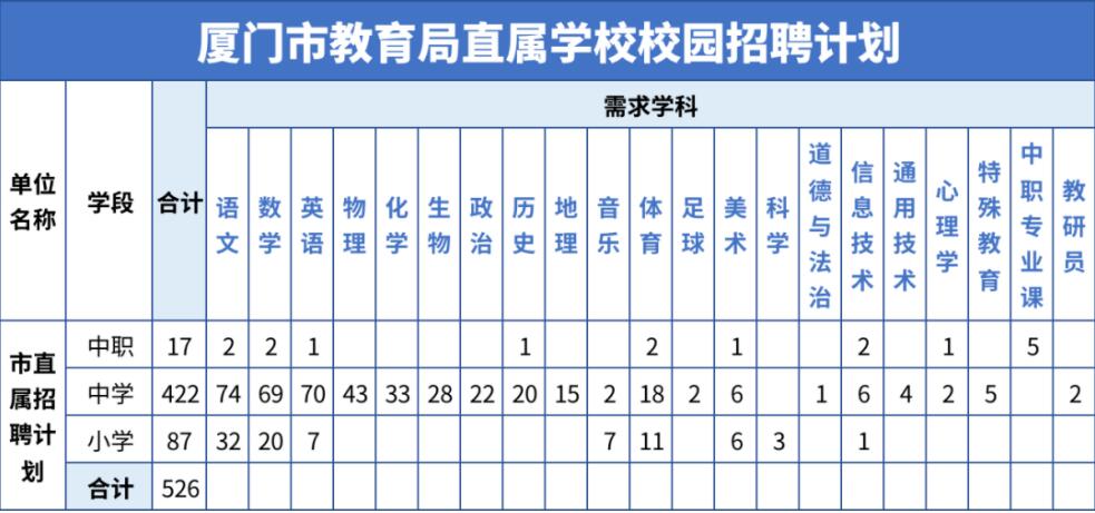 4.普通中小学中职学校的足球岗位、中职学校的专业课岗位及厦门市教育科学研究院教研员岗位对教师资格证相关证明材料暂不要求。