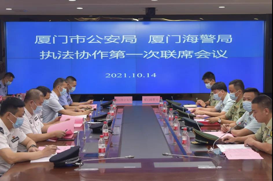 10月14日,厦门市公安局、厦门海警局召开联席会议,签订联勤联动协议,启动打击海上走私、偷私渡陆海联动专项行动,充分发挥陆海联动执法合力,有力维护厦门沿海及管辖海域社会治安和经济秩序。