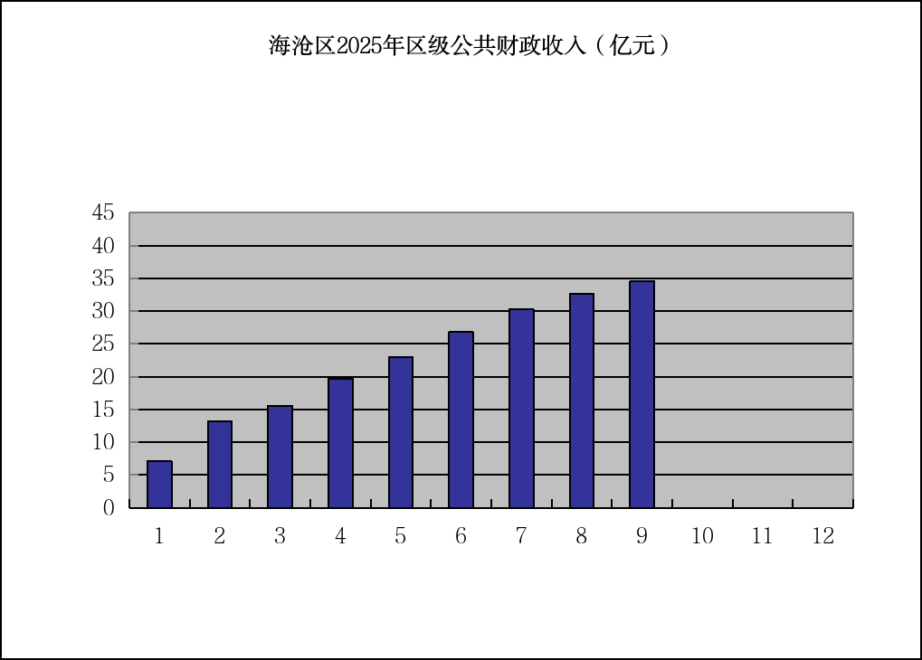 1-9月,海沧区财政总收入194.4亿元,完成预算的81.6%;区级一般公共预算收入34.6亿元,完成预算的80.1%。
