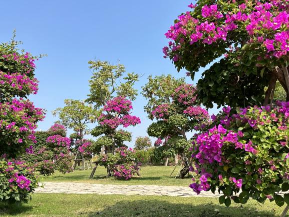 马銮湾生态三岛公园景观优美,生态良好,绿化率高,植物品种多达140多种,同时引入了多种很具观赏性的植物,打造“花叶出彩、乔木成林、一季一景”特色景观,春季黄花风铃木、宫粉紫荆争奇斗艳,夏季凤凰木、紫薇竞相绽放,秋冬季台湾栾树、美人树增添暖冬色彩。